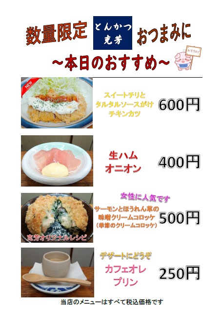 本日のおすすめ(ディナー)更新しました。
