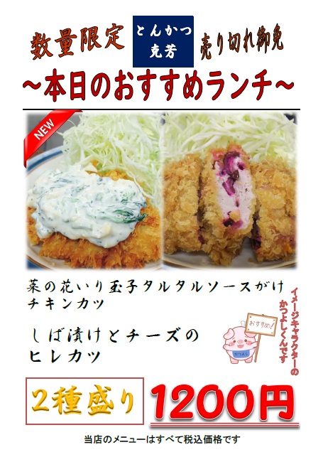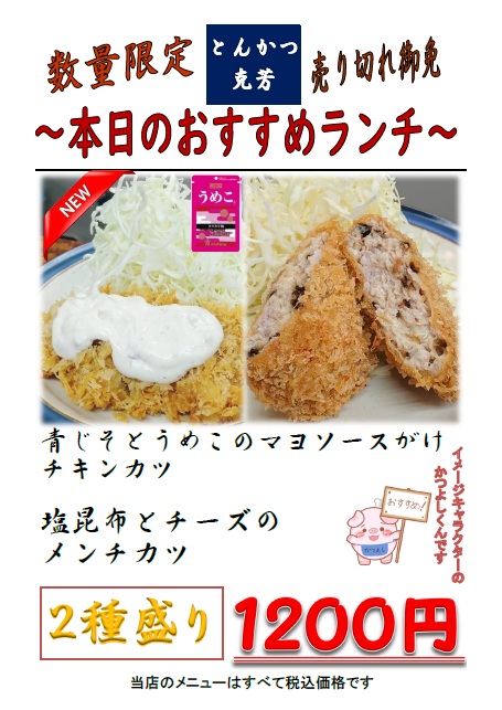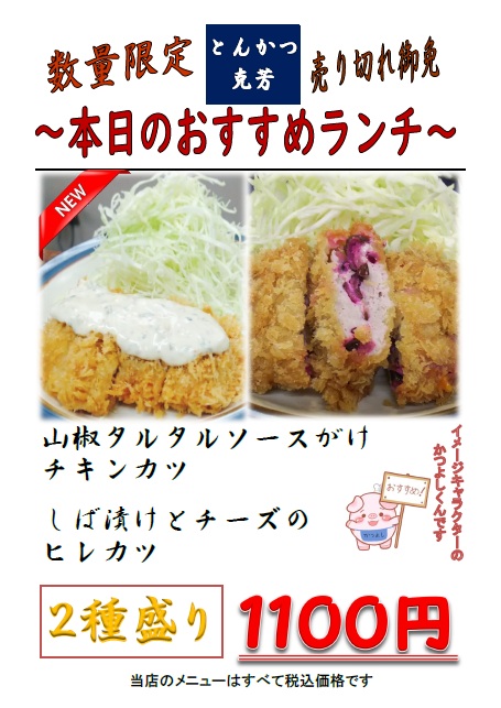 本日のおすすめ(ランチ)更新しました。