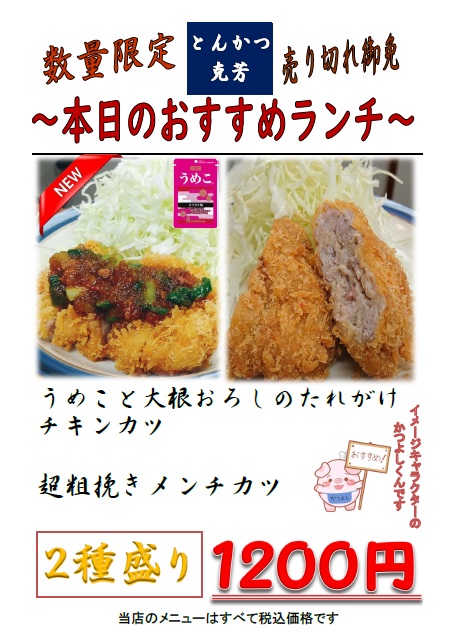 本日のおすすめ(ランチ)更新しました。