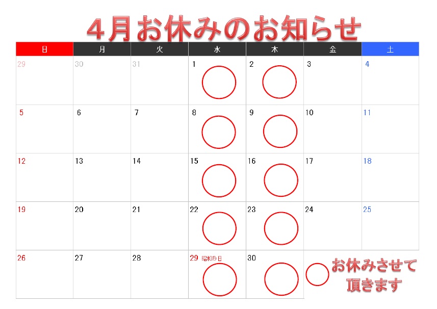 2017年3月お休みのお知らせ更新しました。