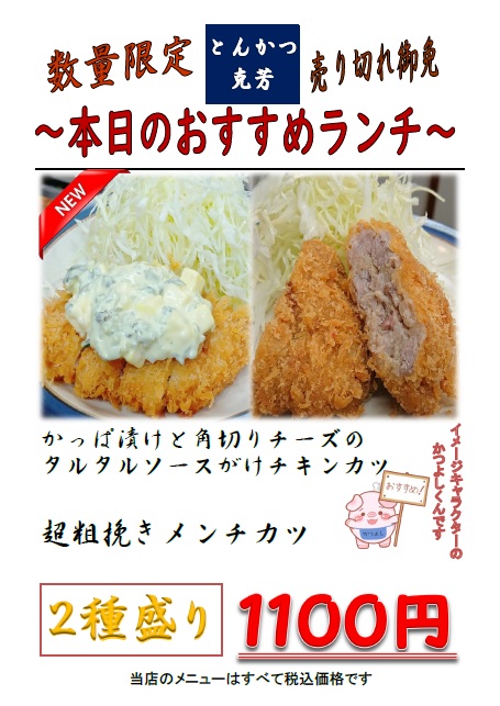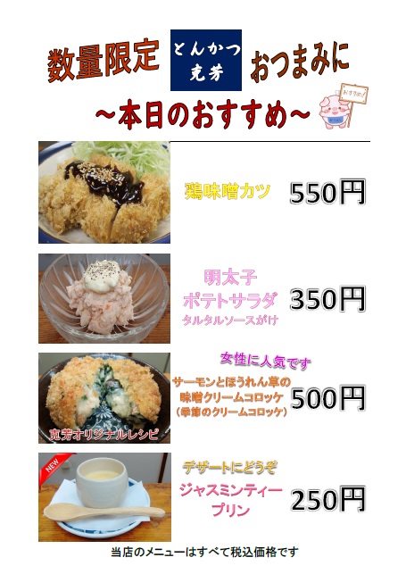 本日のおすすめ(ランチ・ディナー)更新しました。