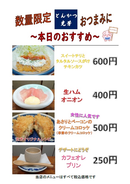 本日のおすすめ(ランチ・ディナー)更新しました。
